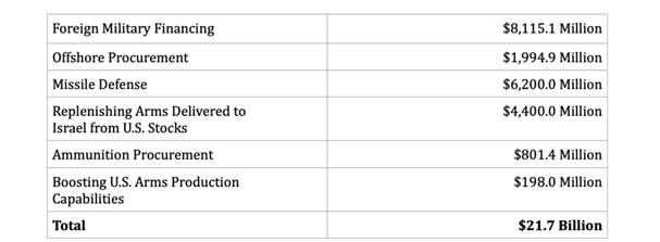 U.S. Militärhilfen für Israel im Zeitraum Oktober 2023 – September 2025. [Quincy Institute, 2025]