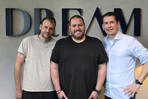Die Gründer von Dream (v.l.n.r.): Gil Dolev, Shalev Hulio und Sebastian Kurz. [Handelsblatt, 2025]