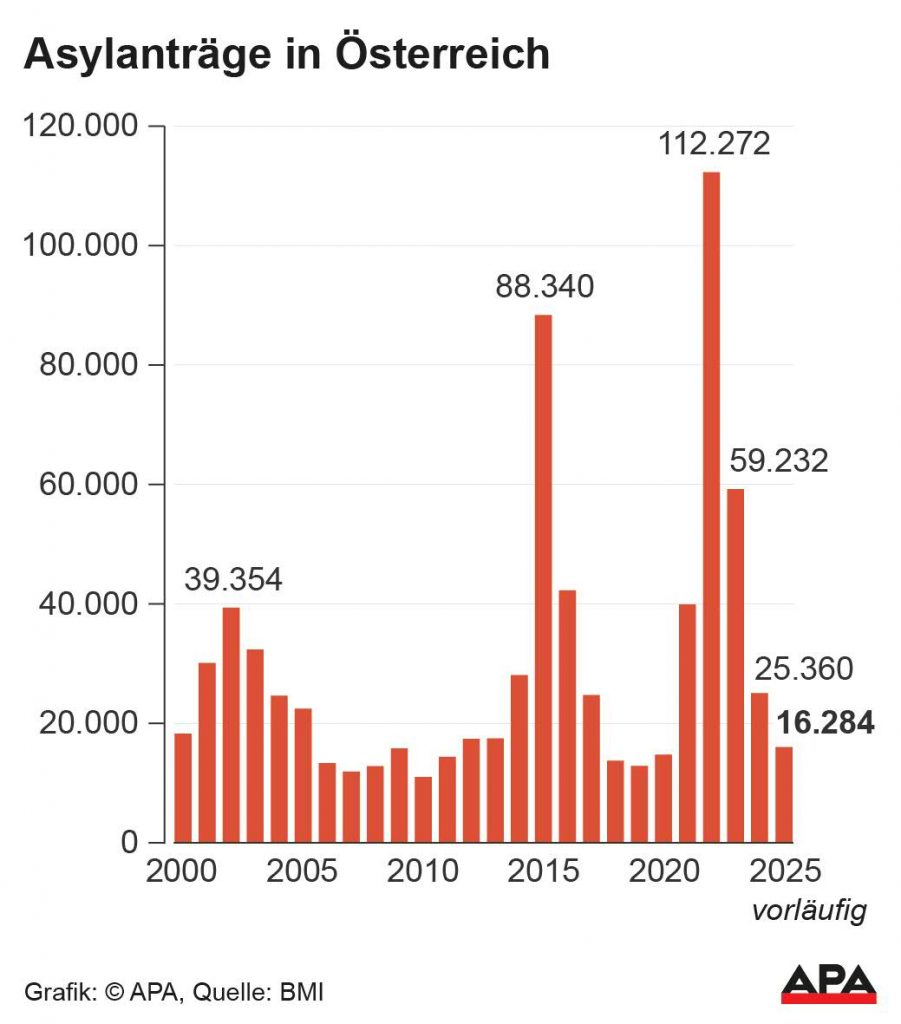 Asylzahlen 2025 stark rückläufig: Niedrigster Stand seit fünf Jahren [Vienna.at, 2026]