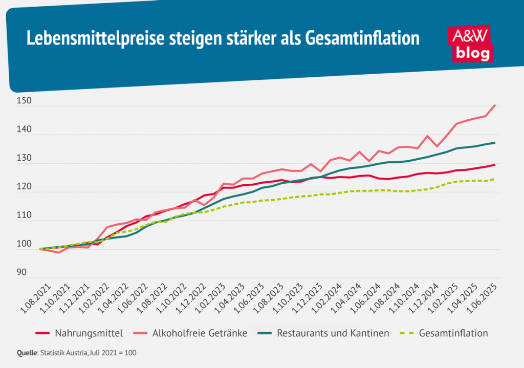 Lebensmittelpreise steigen in Österreich deutlich stärker als die allgemeine Inflation. Besonders Grundnahrungsmittel verzeichneten überdurchschnittliche Teuerungsraten, was Haushalte mit niedrigen Einkommen überproportional belastet, da sie einen größeren Anteil ihres Budgets für Ernährung aufwenden. Neben globalen Kostenfaktoren wie Energie- und Rohstoffpreisen wirken auch Lieferkettenprobleme und Marktkonzentration im Lebensmitteleinzelhandel preistreibend [A&W Blog, 2025].
