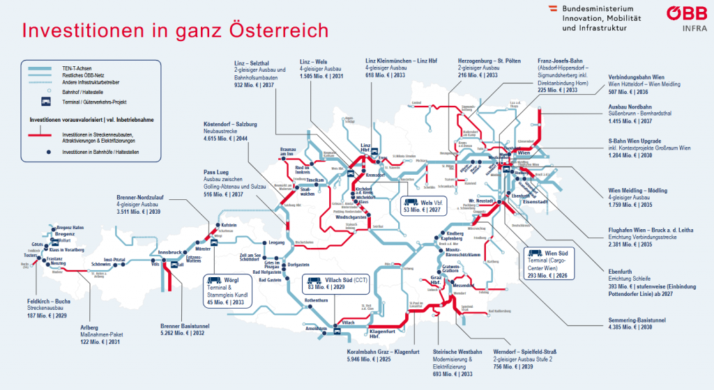 Mit dem neuen ÖBB-Rahmenplan 2025–2030 im Umfang von 19,7 Mrd. Euro treiben die ÖBB den Ausbau und die Modernisierung des Bahnnetzes weiterhin mit hoher Intensität voran. Ziel bleibt es, auch künftig möglichst vielen Menschen ein attraktives und klimafreundliches Mobilitätsangebot bereitzustellen [ÖBB, 2026]