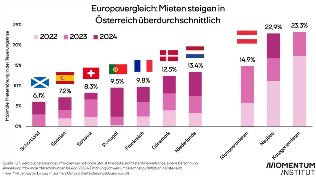 Ländervergleich zeigt: Mietpreise klettern in Österreich überproportional [Momentum Institut, 2024]